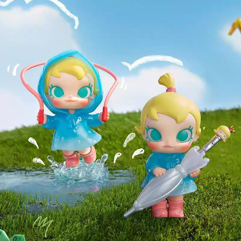 Baby Molly Funny Raining Day Hanging Card Set includes 1 individual boxes in different designs, and each purchase is for one box containing a single blind box, with the contents unknown until opened. Each box features unique character inspired by mysterious legends. You may randomly receive a common figure, a hidden figure, or even a rare special edition.